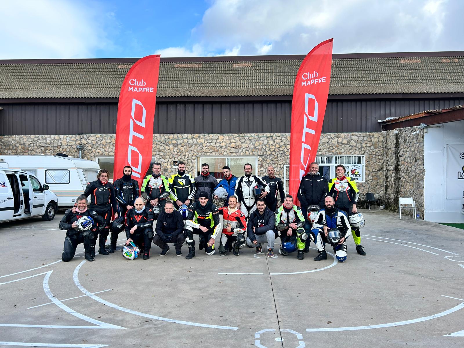 Este domingo, la Escuela de Chicho Lorenzo en Alpedrete volvió a acoger una de las jornadas de formación más importantes del año: un nuevo curso práctico destinado a un grupo muy numeroso de clientes de MAPFRE (pertenecientes a su programa de fidelización Motoclub MAPFRE), dentro del programa especial que la aseguradora ofrece para mejorar la seguridad de sus motoristas entre muchas otras cosas.