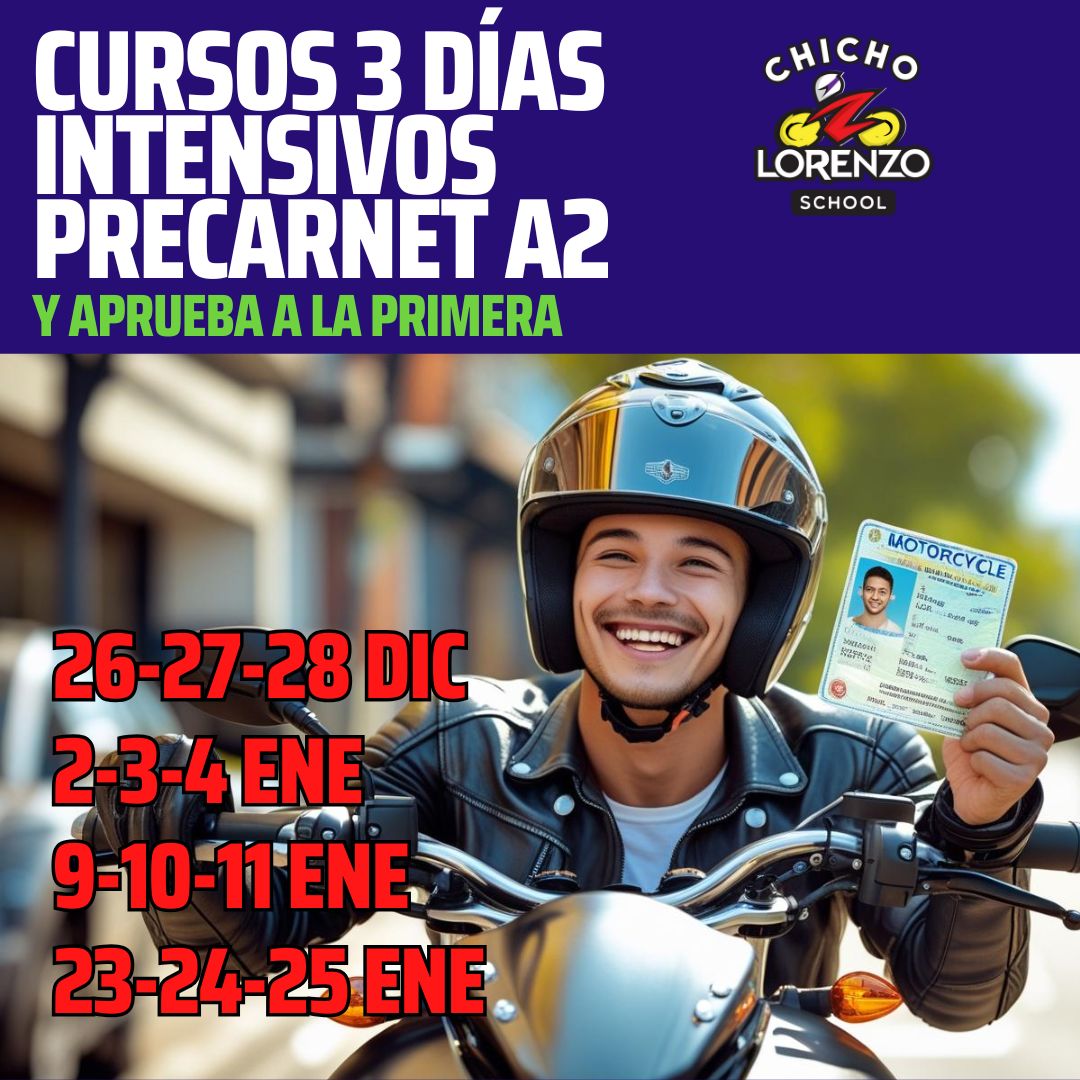 Podrás contratarlo en Curso Moto Pre-carnet A2 (chicholorenzo.com) hasta agotar plazas. Para coordinar bien tu formación intensiva contacta por whatsapp o llamada en el 698 923 439 (Madrid)