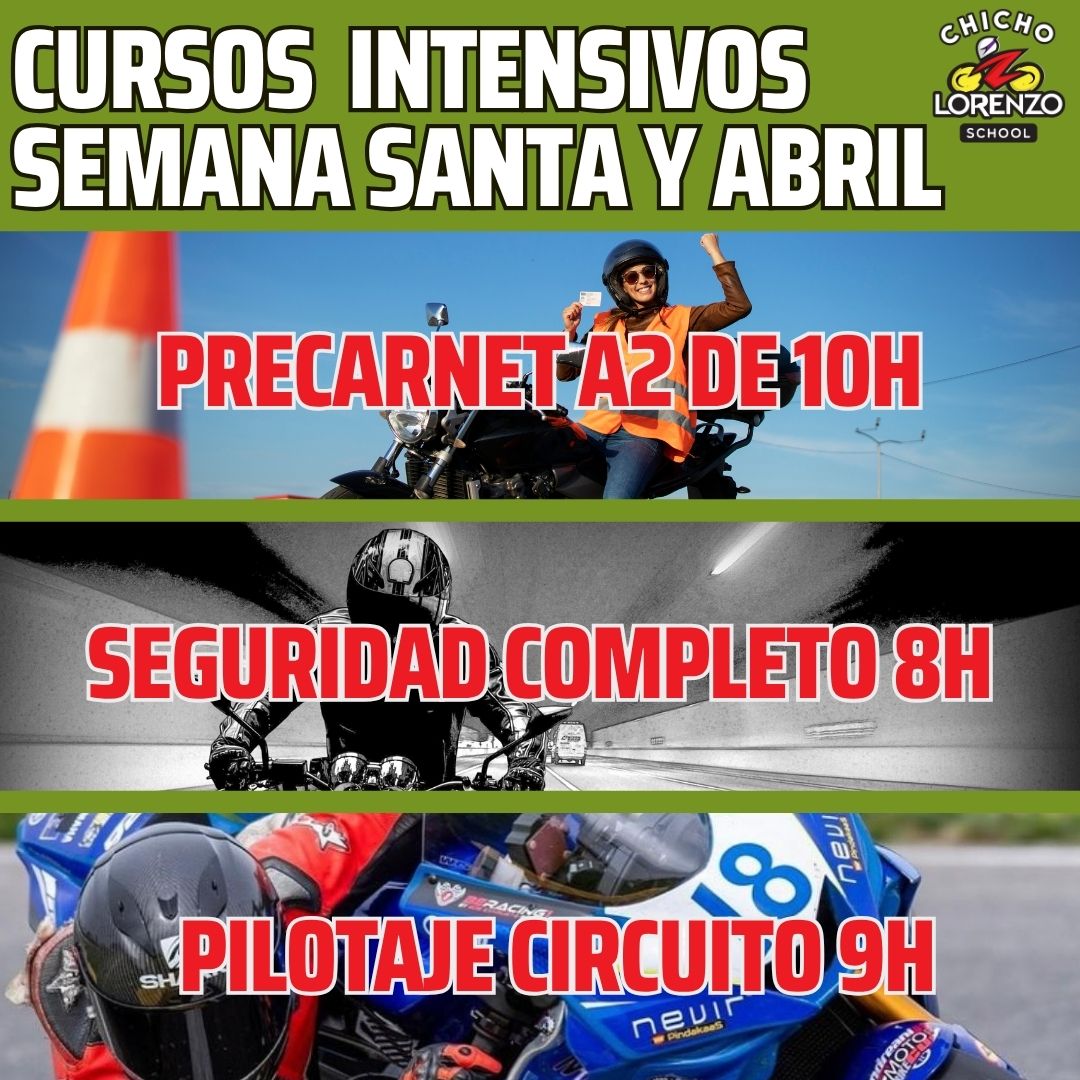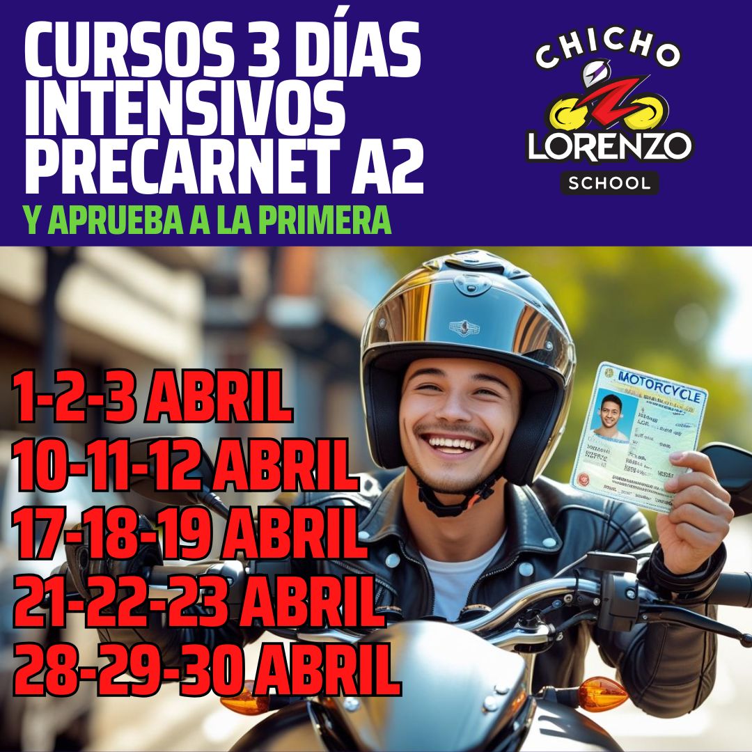 Podrás VER TODOS LOS DETALLES DE ESTE CURSO Y contratarlo en Curso Moto Pre-carnet A2 (chicholorenzo.com) hasta agotar plazas. Para coordinar bien tu formación intensiva contacta por whatsapp o llamada en el 698 923 439 (Madrid)