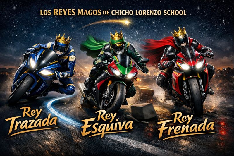 En Chicho Lorenzo School entendemos que el mejor regalo para un motorista no es algo material, sino aquello que mejora su seguridad y su pilotaje para toda la vida. Por eso, este año, nuestros Reyes Magos tienen nombres muy claros y un significado aún más importante: Rey Trazada, Rey Frenada y Rey Esquiva.